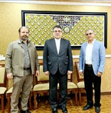 از راست محمد کاوند، هنرمند ایرانی و علیاصغر محمدی، سفیر ایران در مالزی