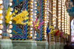 در همین زمینه دیوارهای حرم مطهر با تزئینات مختلف پوشیده و پرچم‌های حاوی تبریک و تهنیت بر دیوارها آویخته شده است.