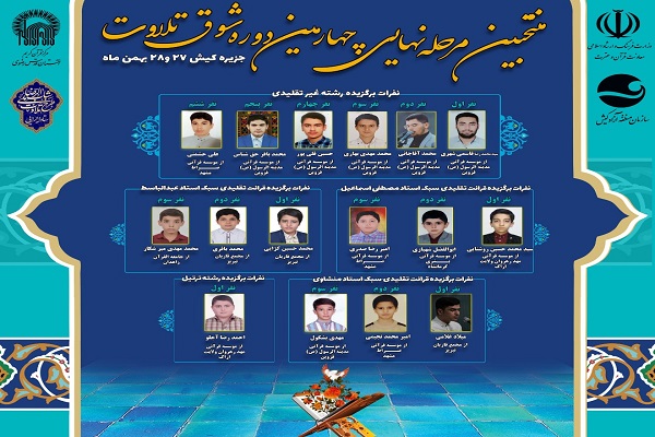 در رشته تلاوت غیر تقلیدی سیدمحمدرضا قاسمیشهری از خراسان رضوی، محمدمهدی بهاری، حسین قلیپور و محمدباقر حقشناس از قزوین و علی حشمتی از خراسان رضوی و در سبک استاد مصطفی اسماعیل نیز سیدمحمدحسین روشنایی از استان مرکزی(اراک)، ابوالفضل شهبازی از کرمانشاه و امیررضا صدری از خراسان رضوی و در سبک استاد محمدصدیق منشاوی نیز میلاد غلامی از تبریز، امیرمحمد نجیمی از خراسان رضوی(مشهد) و مهدی بشکول از قزوین و در سبک استاد عبدالباسط نیز محمدحسین کژابی و محمد باقری از تبریز و محمدمهدی میرشکار از سیستان و بلوچستان (زاهدان) با هم به رقابت میپردازند.