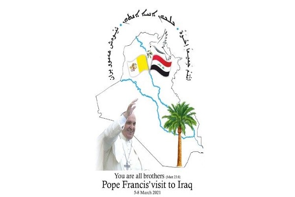لوگوی طراحی شده برای سفر پاپ، منعکسکننده این حقیقت است؛ این لوگو پاپ فرانسیس را با رودخانههای معروف دجله و فرات عراق، یک درخت خرما و یک کبوتر که شاخه زیتونی را بر فراز پرچمهای واتیکان و عراق حمل میکند، نشان میدهد و شعار «شما همه برادر هستید»، به زبانهای عربی، کلدانی و کردی بر روی آن نوشته شده است.