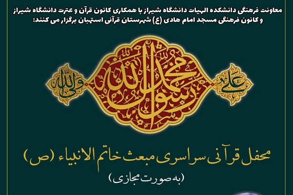 این محفل چهارشنبه، 20 اسفندماه از ساعت 19 مصادف با شب مبعث پیامبر اعظم(ص) برگزار میشود و پخش زنده در صفحه اینستاگرام کانون قرآن و عترت دانشگاه شیراز به نشانی @quranshirazu نیز انجام میشود.