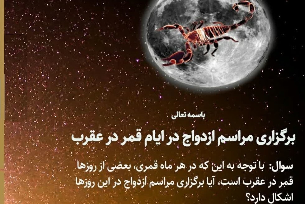 سؤال: با توجه به اینکه در هر ماه قمری، بعضی از روزها قمر در عقرب است، آیا برگزاری مراسم ازدواج در این روزها اشکال دارد؟