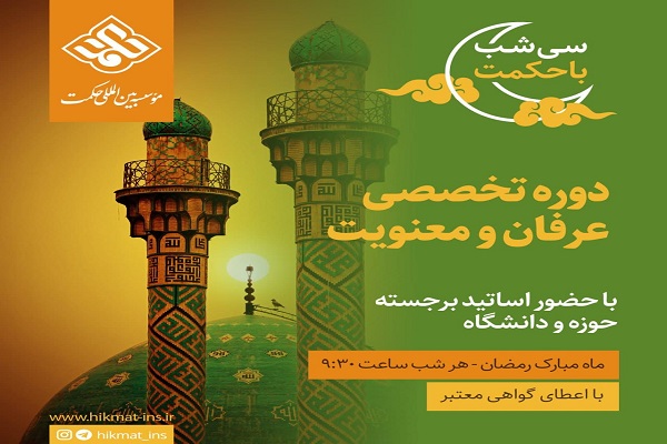دوره تخصصی عرفان و معنویت، در شب‌های ماه مبارک رمضان، به همت مؤسسه بین‌المللی حکمت با سخنرانی جمعی از اساتید برجسته این حوزه به صورت مجازی برگزار می‌شود.