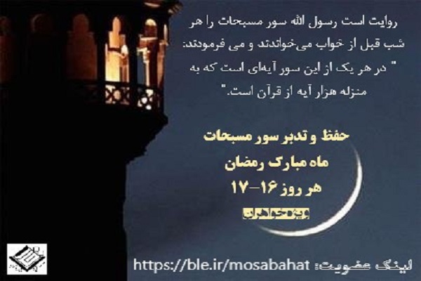 با شروع ماه مبارک رمضان، هر روز از ساعت 16 تا 17 این سورهها ویژه بانوان قرائت و تفسیر میشود، علاقهمندان میتوانند از طریق لینک https://ble.ir/mosabahat از این کلاس بهرهمند شوند.