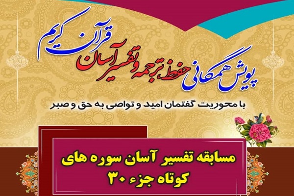 مسابقه تفسیر آسان سورههای کوتاه جز ۳۰ قرآن براساس فیلمهای آموزشی با تفسیر حجتالاسلام والمسلمین قرائتی و از سوره تین تا سوره ناس برگزار میشود.