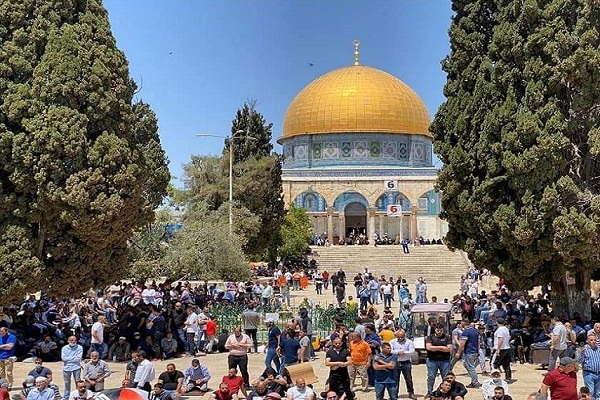 از سوی دیگر، هزاران فلسطینی امروز نماز جمعه را در شکوهی تمامتر در محوطه‌ها و صحن‌‎های مسجد مبارک الاقصی اقامه کردند.