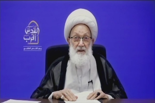 رهبر معنوی شیعیان بحرین گفت، قدس با ایمان جبهه مقاومت و گروههای آزاده مقاومت فلسطین و میلیونها جوان امت و مردان و زنانش به آزادی و پاک شدن نزدیکتر است و قدس، فلسطین، دین قبل از مال و خون و جان است.