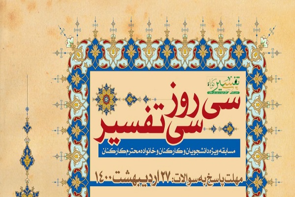 به گزارش ایکنا، مسابقه «سی روز سی تفسیر»، ویژه دانشجویان و کارکنان و همچنین خانواده کارمندان دانشگاه علامه طباطبایی برگزار می‌شود.