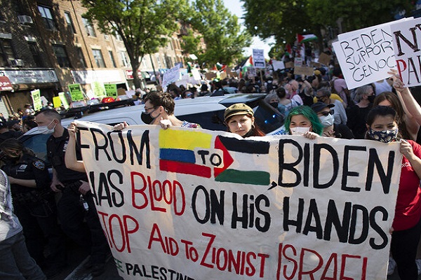 آنها همچنین با سر دادن شعارهایی از دولت جو بایدن، رئیسجمهور این کشور خواستند حمایت از رژیم اشغالگر اسرائیل را متوقف کند.