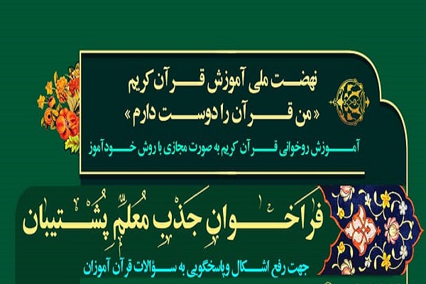 به گزارش ایکنا، فراخوان جذب معلم پشتیبان در طرح ملی نهضت آموزش قرآن کریم با عنوان «من قرآن را دوست دارم» اعلام شد. در این طرح روخوانی قرآن به صورت مجازی با روش خودآموز آموزش داده میشود و معلمهای پشتیبان وظیفه رفع اشکال و پاسخگویی به سؤالات قرآنآموزان را خواهند داشت.