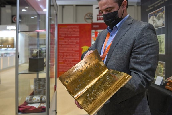 وی اعلام کرد که غرفه آدینا گراتس برخی از آثار ارزشمند و کمیاب دینی و اسلامی را به نمایش میگذارد از جمله یک نسخه طلاکاری شده از قرآن کریم که روی کاغذ طلای 24 عیار نوشته شده است.