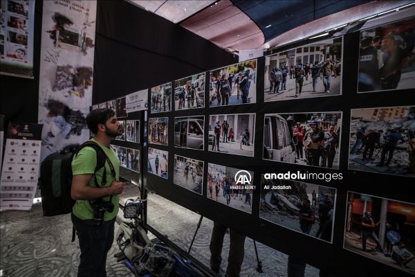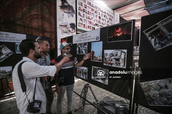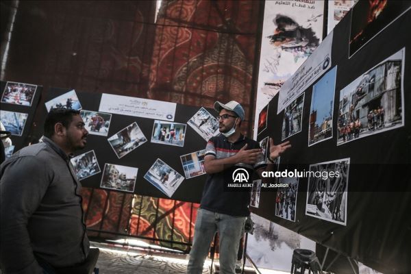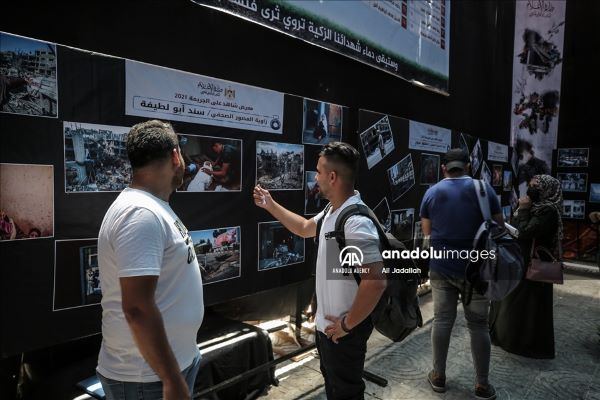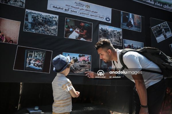 آناتولی، نمایشگاه عکس فلسطین با عنوان «جنایات سال 2021 را مشاهده کنید» روز گذشته در باغ بنای یادبود سرباز ناشناس در شهر غزه برگزار شد.