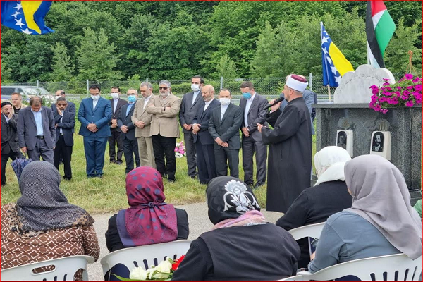 در پایان مراسم مقامات ایرانی و بوسنیایی حاضر در مراسم با اهدای گل به مقام والای این شهید و همکار وی شهید محمد آودیچ ادای احترام کردند.