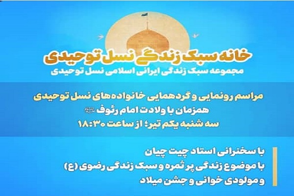 به گزارش ایکنا، مراسم رونمایی از خانه سبک زندگی ایرانی ـ اسلامی نسل توحیدی و گردهمایی خانوادههای نسل توحیدی مجمع مدارس دانشجویی قرآن و عترت دانشگاه تهران سهشنبه، اول تیرماه، همزمان با میلاد امام رضا(ع) ساعت 18:30 برگزار میشود.