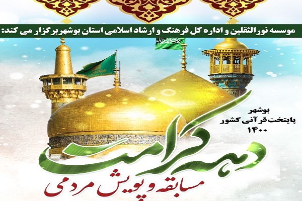 مسابقه و پویش مردمی دهه کرامت از سوی مؤسسه نورالثقلین بوشهر و اداره‌کل فرهنگ و ارشاد اسلامی این استان برگزار می‌شود.