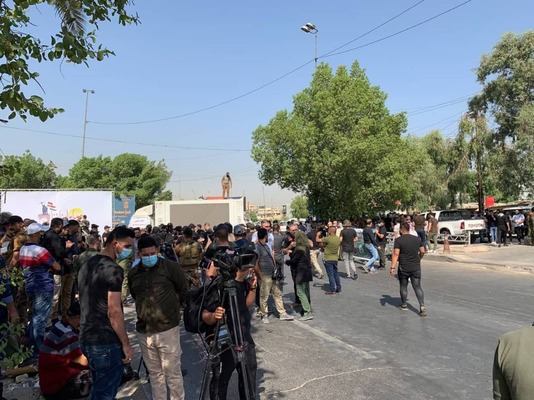 در همین حال از بیم حمله مردم و طرفداران گروههای مقاومت به سفارت آمریکا در منطقه الخضراء این منطقه از سمت الجادریه مسدود شد.