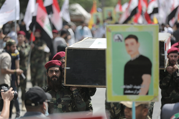 در لحظه رسیدن ابوفدک المحمداوی، رئیس ستاد کل حشد الشعبی نیز مردم شعار «ابوفدک انتقام میخواهیم» سر میدادند. آنها همچنین از گروههای مقاومت عراق خواستند پاسخی قاطع و دندانشکن به نظامیان اشغالگر آمریکایی بدهند.