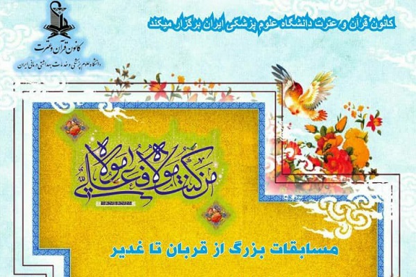 به گزارش ایکنا، مسابقه «از قربان تا غدیر» از سوی کانون قرآن و عترت دانشگاه علوم پزشکی ایران بهمناسبت دهه ولایت برگزار میشود.