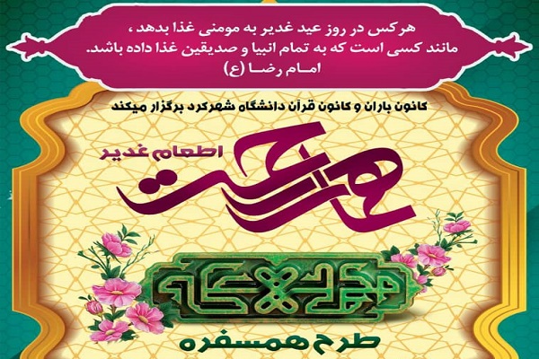 بنابر این گزارش، طرح «همسفره برای نیازمندان» نیز عنوان طرحی است که کانون قرآن و عترت و کانون باران دانشگاه شهرکرد برای عید غدیر برگزار می‌کند.