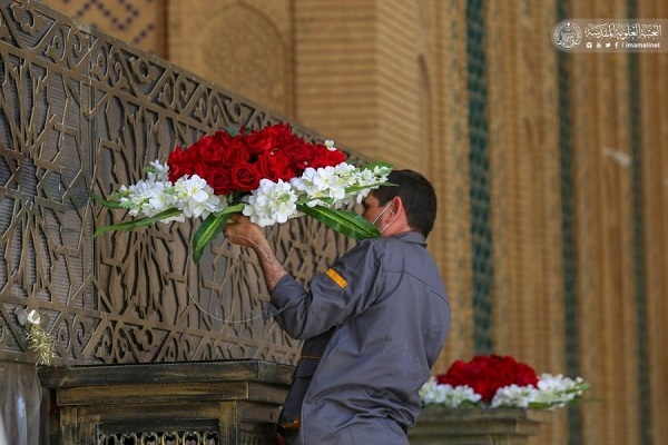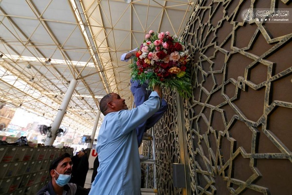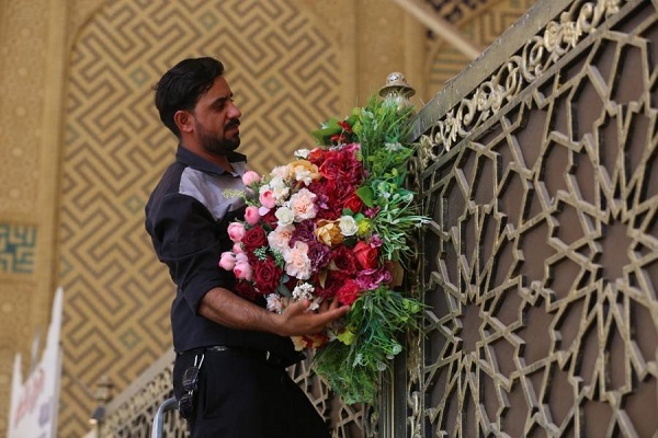 به همین مناسبت بخش تزئینات حرم مطهر حضرت علی(ع) نیز با دسته گلهای زیبا و متنوع، صحنها و حرم مطهر را آذینبندی کردهاند.