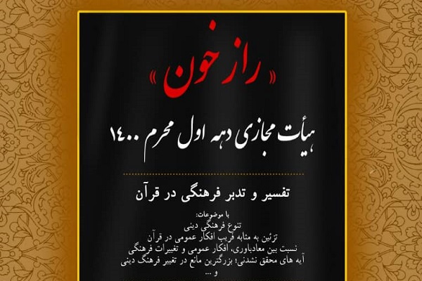 به گزارش ایکنا، هیئت مجازی دهه اول محرم با عنوان «راز خون» از سوی اعضای گروه پژوهشی تغییرات فرهنگی در قرآن (طرح شهید احمدیروشن بنیاد ملی نخبگان) وابسته به دانشگاه امام صادق(ع) برگزار میشود.