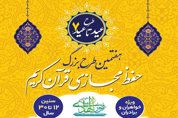 به گزارش ایکنا، هفتمین دوره مجازی حفظ قرآن کریم مؤسسه فرهنگی ـ مردمی قرآن و عترت نورالهادی خرمشهر با عنوان ترم تابستانه دوره عید تا عید آغاز شد.