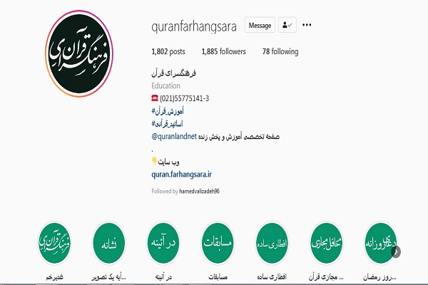 علاقهمندان برای اطلاع از این تولیدات میتوانند به صفحه اینستاگرام فرهنگسرای قرآن به نشانی quranfarhangsar مراجعه کنند.
