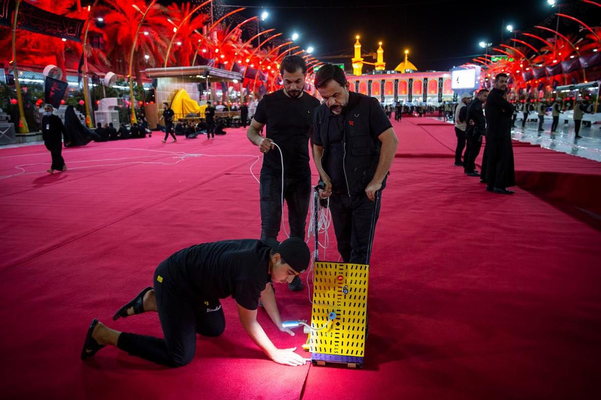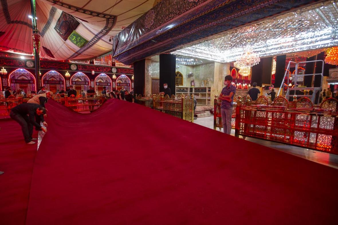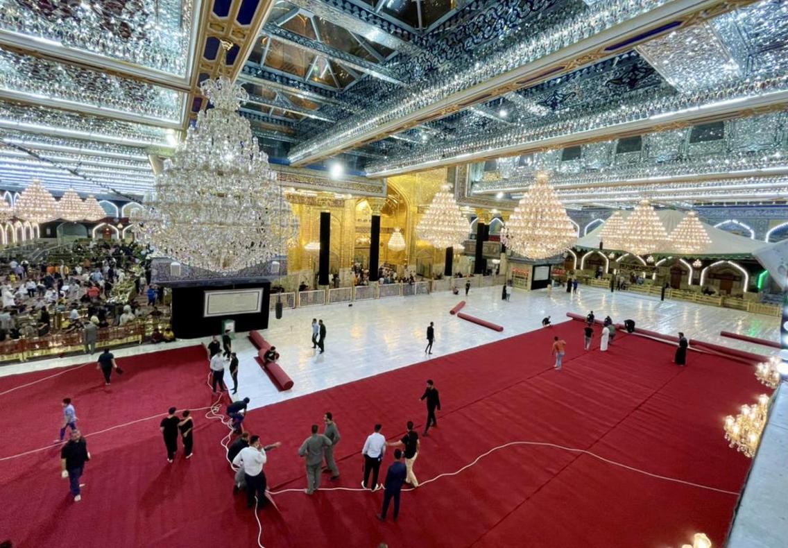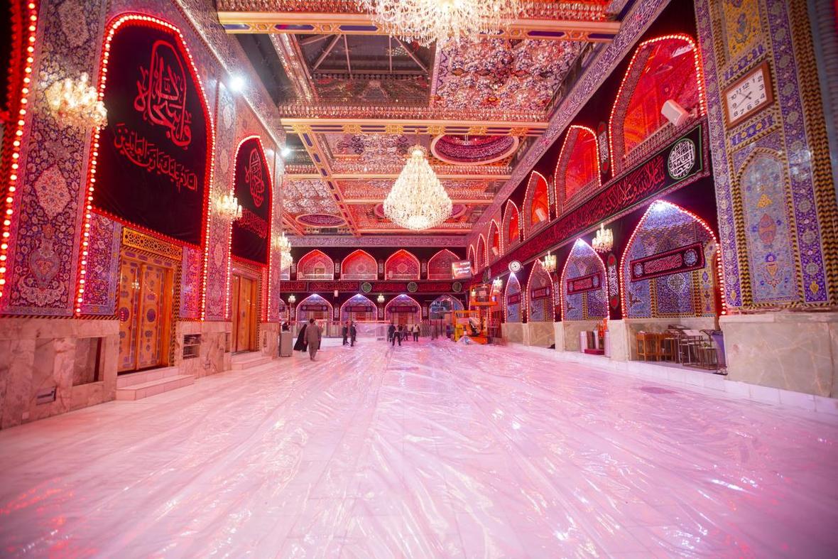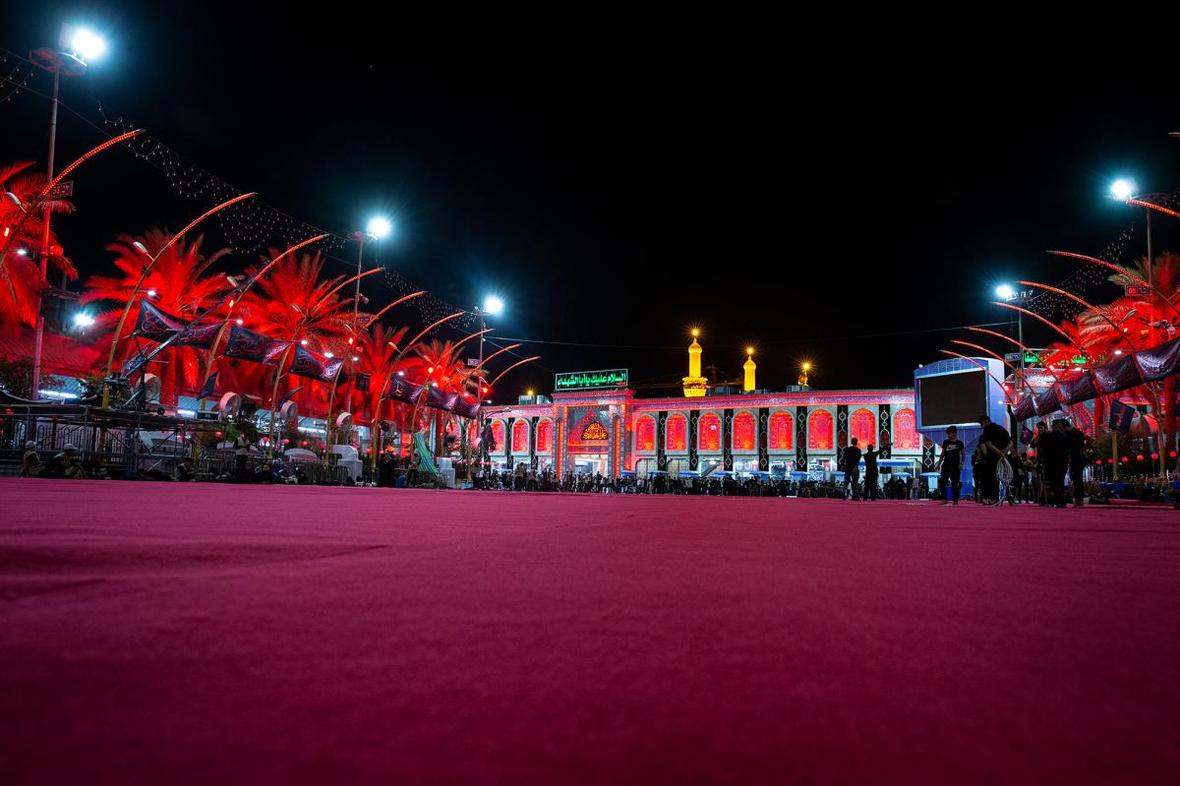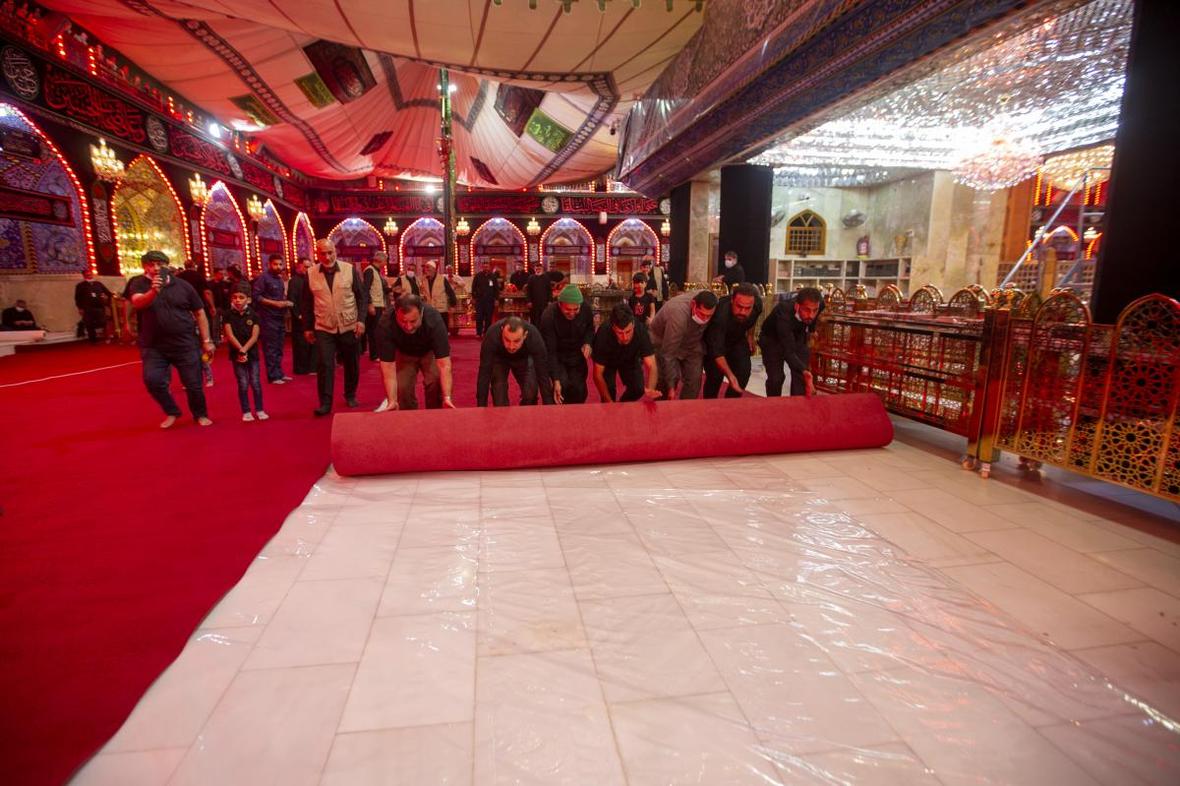 بین‌الحرمین و صحن مطهر حضرت ابوالفضل عباس(ع) در راستای آمادگی برای استقبال از زائران و دسته‌های عزاداری با بیش از پنج هزار متر مربع فرش قرمز مفروش شد.