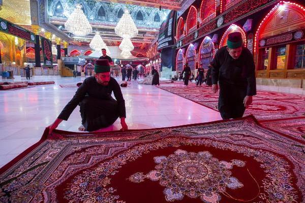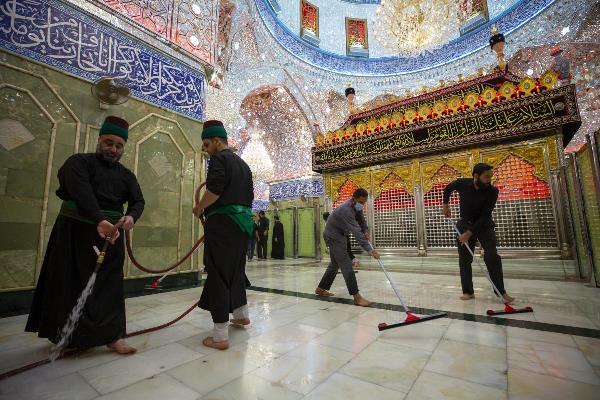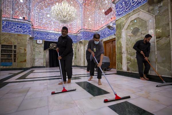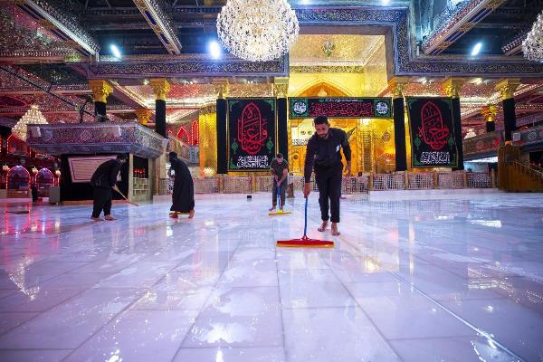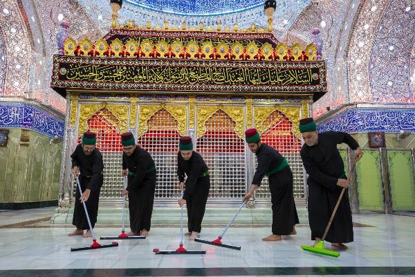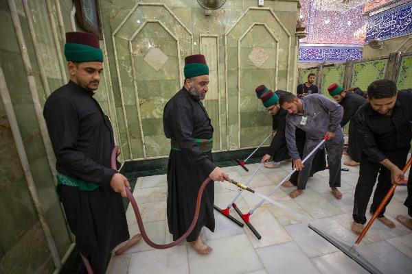 الکفیل، مراسم شستشوی حرم مطهر حضرت عباس(ع) و مفروش و معطر کردن حرم و صحن شریف، از سوی خادمان حرم مطهر و با حضور سید مصطفی ضیاء الدین، عضو شورای مدیریت آستان عباسی برگزار شد.