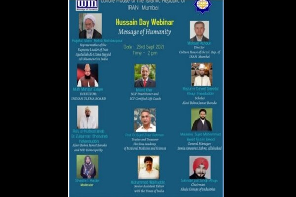 سپس ماذون سعید الخیر، رهبر آینده جماعت بوهرا علوی ایالت گجرات، ضمن تشکر و قدردانی از خانه فرهنگ جمهوری اسلامی ایران در بمبئی برای برگزاری این وبینار اظهار کرد: خداوند متعال در قرآن کریم میفرماید بیتردید در گفتار و رفتار پیامبر اسلام (ص) سرمشق و الگوی نیکو برایتان وجود دارد، برای کسانی که به قیامت اعتقاد دارند. خداوند سبحان را بسیار شاکر هستیم که پیامبر عظیم الشأن اسلام را الگوی کامل در جامعه انسانها قرار داد و ایشان را رحمة للعالمین اعلام کرد و خاندان عصمت و طهارت در زمان خود نیز اسوه کاملی برای جامعه خود بودند و سید الشهدا از سال ۶۱ هجری تاکنون اسوه کاملی برای بشر است و اخلاق اسلامی را از گذشته تا کنون به نسلهای پس از خود ارائه داده است.
