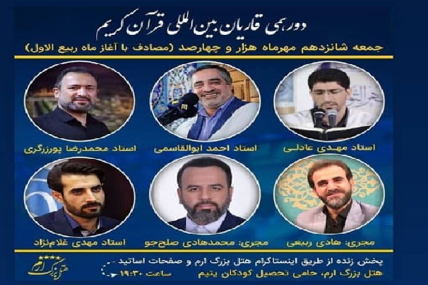 قاریان بین‌المللی کشورمان در اولین روز از ماه ربیع الاول و به منظور تلاوت آیاتی از کلام الله مجید در هتل بزرگ ارم تهران دورهمی خواهند داشت.