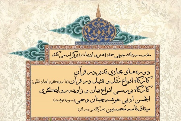به گزارش ایکنا، دورههای مجازی «تدبر در قرآن» از سوی مدرسه دانشجویی حمد (هنر و ادبیات از منظر قرآن) مجمع مدارس دانشجویی قرآن و عترت دانشگاه تهران در فصل آموزشی پاییز ویژه دانشجویان، هنرجویان، اساتید، فعالان و علاقهمندان عرصههای هنر و ادبیات برگزار میشود.