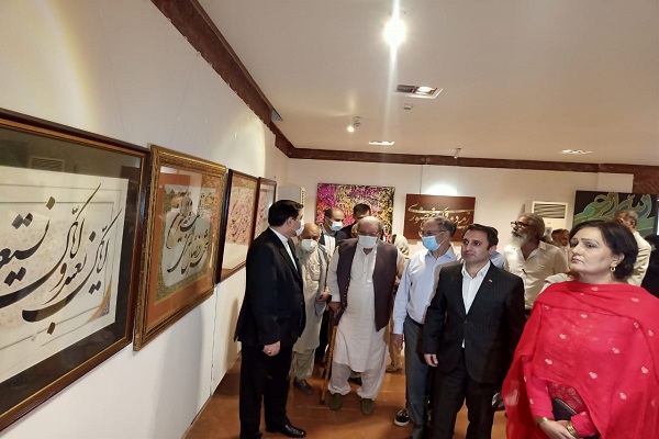 پس از افتتاح نمایشگاه مشترک آثار هنری ایران و پاکستان، سرکنسول و مسئول خانه فرهنگ کشورمان به همراه دیگر مسئولان پاکستانی و خوشنویسان این کشور از آثار هنرمندان ایرانی و پاکستان بازدید کردند. این نمایشگاه به مدت 10 روز به روی بازدید کنندگان باز خواهد بود.