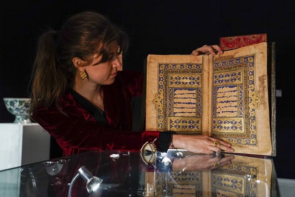 قرآنی که در قرن شانزدهم میلادی در ایران با طلا نوشته شده است هم از آثار مهمی است که در این مزایده به فروش گذاشته میشود. این قرآن یکی از معدود نسخههای خطی کاملی است که متن اصلی آن با طلا نوشته شده و انتظار میرود این قرآن تا 500 هزار پوند به فروش برسد.