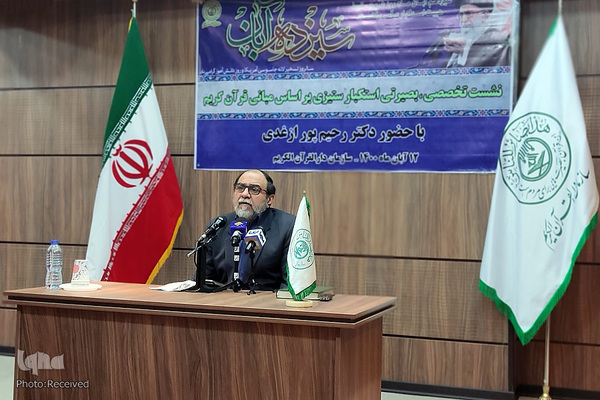 به گزارش ایکنا، نشست تخصصی ـ بصیرتی استکبارستیزی براساس مبانی قرآن کریم صبح امروز چهارشنبه، ۱۲ آبانماه با حضور حسن رحیمپورازغدی، عضو حقیقی شورای عالی انقلاب فرهنگی در محل سازمان دارالقرآن الکریم در آستانه سیزدهم آبان، سالروز مبارزه با استکبار جهانی برگزار شد. این نشست با حضور مدیران، اساتید، پیشکسوتان و جامعه قرآنی از جمله، حجتالاسلاموالمسلمین مهدی اخوانصباغ، رئیس سازمان دارالقرآن کریم، محمدحسین حسنی و رئیس سازمان قرآنی دانشگاهیان کشور در سالن اجتماعات سازمان دارالقرآن الکریم برگزار شد.