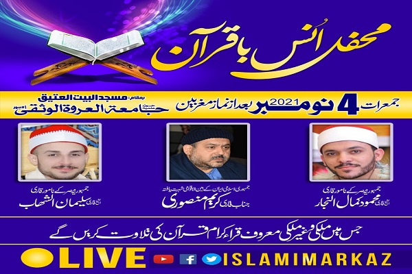 قاریان ایرانی و مصری به دعوت حوزه علمیه «عروة الوثقی» لاهور در محفل انس با قرآن این مرکز حضور یافته و آیاتی از قرآن تلاوت کردند.
