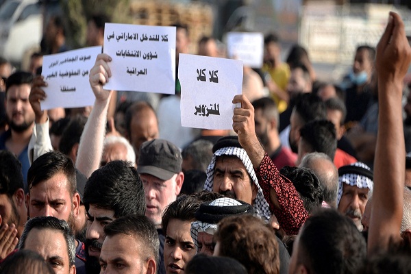 طرفداران الحشد الشعبی از جمله ائتلاف الفتح بخشی از معترضان به نتیجه انتخابات هستند که معتقدند طرفهایی خارجی از جمله امارات و آمریکا نتیجه انتخابات را دستکاری کردهاند.