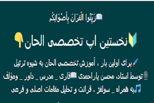 به گزارش ایکنا، نخستین اپلیکیشن تخصصی الحان به شیوه ترتیل با تدریس محسن یاراحمدی، قاری، مدرس و مؤلف کتاب آموزش «صوت و لحن قرائت قرآن کریم» طراحی و ایجاد شد.