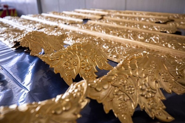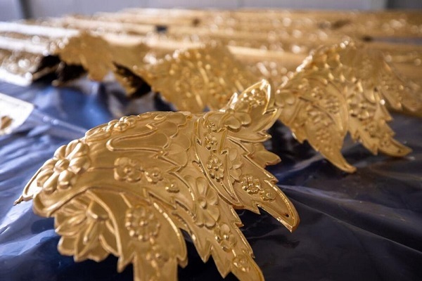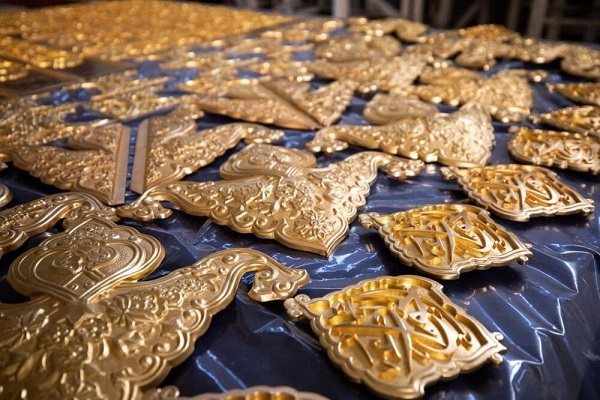 وی افزود: عملیات طلاکاری با استفاده از فناوریهای جدید و پیشرفته انجام شده است و پس از پایان طلاکاری، قطعهها را بر اساس محل قرارگیری آنها بر روی سازه چوبی ثابت خواهیم کرد تا از طراحی و مطابقت آن با اندازه اصلی اطمینان حاصل کنیم.
