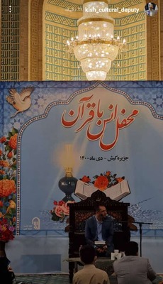 این محفل به همت مرکز فعالیتهای قرآنی جزیره کیش برپا شد که طی آن سعید پرویزی، نفر اول مسابقات بینالمللی قرآن کریم، شجاع زویدات، نفر اول مسابقات جهانی قرآن کریم در مصر، ایران و عراق و هادی اسفیدانی، نفر اول مسابقات بینالمللی قرآن کریم به قرائت قرآن پرداختند. طی این محفل حسن خانچی، ابتهال زیبایی را اجرا کرد.
