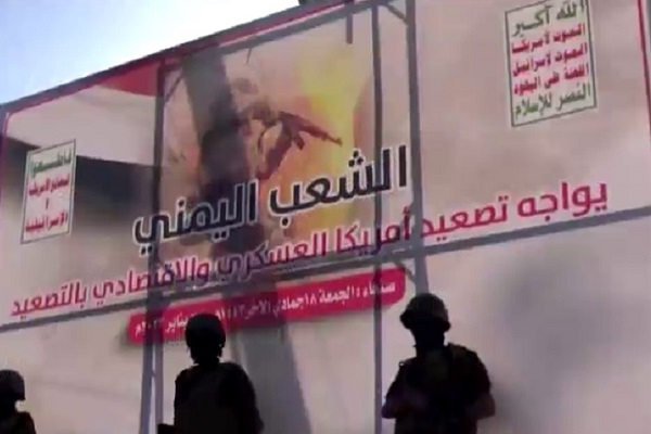 جمعیتی که در میدان باب الیمن در صنعا، پایتخت این کشور ازدحام کردند، پرچمها و پلاکاردهایی را حاوی شعارهایی علیه سیاستهای آمریکا و تشدید مداوم جنایتهای آن برافراشتند.