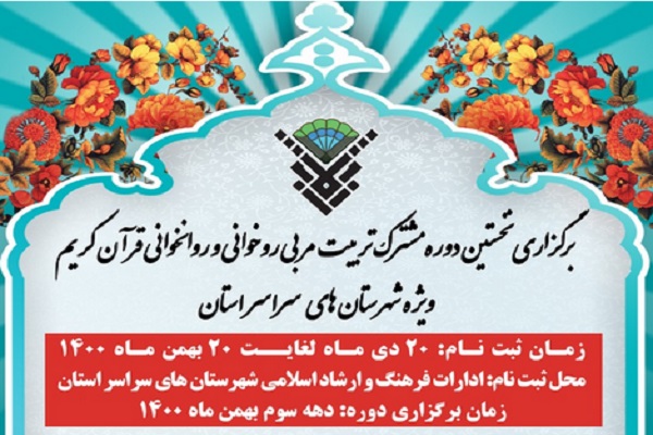 این دوره از دهه سوم بهمنماه با تدریس اساتید قرآنی ممتاز کشوری برگزار خواهد شد و در پایان نیز به شرکتکنندگان گواهینامه با امضای مشترک مدیران کل تبلیغات اسلامی، ارشاد و اتحادیه مؤسسات قرآنی استان اعطا خواهد شد.