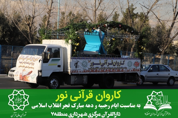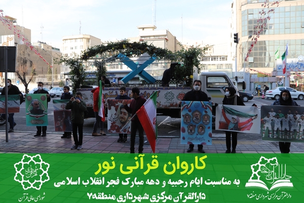 کاروان قرآنی نور به مناسبت ایام رجبیه و جشن دهه مبارک فجر انقلاب اسلامی در منطقه ۷ تهران حرکت کرد.