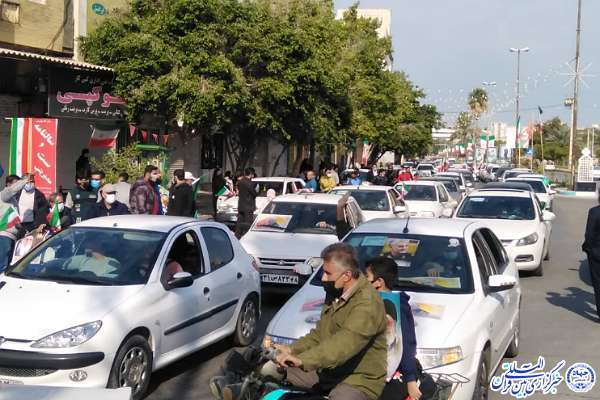 راهپیمایی سراسری یوم‌الله ۲۲ بهمن از ساعت ۹:۳۰ به‌طور رسمی در سراسر ایران اسلامی آغاز شد و مردم بوشهر امروز به صورت خودرویی و موتوری، به شکرانه ۴۳ سال اقتدار، با اهتزاز پرچم‎‎ جمهوری اسلامی در جوار سواحل خلیج‌فارس با شعار مرگ بر آمریکا و اسرائیل، هیمنه استکبار را در هم شکستند.