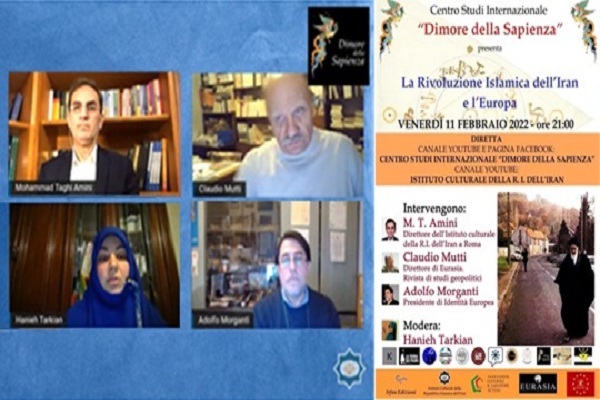 هم‌زمان با چهل و سومین سالگرد پیروزی انقلاب، وبینار «گفتمان انقلاب اسلامی ایران در اروپا» به همت رایزنی فرهنگی جمهوری اسلامی ایران در ایتالیا و با مشارکت مرکز مطالعات بین‌المللی خانه دانایی شهر رم، انجمن منجی منتظر، مجله مطالعات جغرافیای سیاسی اوراسیا، انجمن فرهنگی بین‌المللی هویت اروپایی و انتشارات عرفان، در شهر رم برگزار شد.