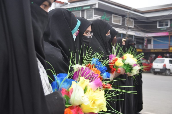 به گزارش ایکنا از کشمیر، تعدادی از بانوان محجبه اهل سرینگر کشمیر صبح روز دوشنبه، 25 بهمن به احترام حجاب و به نشانه حمایت از حق دانش آموزان دختر کارناتاکا در استفاده از پوشش اسلامی، به افراد محجبه گل دادند.