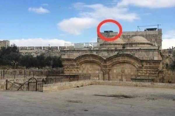 نگهبانان فلسطینی پس از تخریب پُست نظامیان صهیونیست بر فراز مصلای باب الرحمه، آن را به سمت بیرون از دیوارهای مسجدالاقصی پرت کردند.