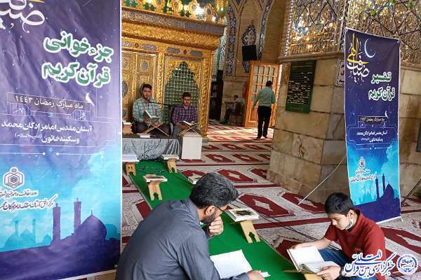 به گزارش خبرنگار افتخاری ایکنا، مجلس جزءخوانی و تفسیر قرآن کریم ویژه ماه مبارک رمضان از سوی روابط عمومی و اداره امور قرآنی ادارهکل اوقاف و امورخیریه استان البرز با قرائت علی علیدوست، محمدحسین میرزایی و علی آدینهپور، 9 اردیبهشت در صحن زیارتی آستان مقدس امامزادگان محمد و سکینه خاتون(ع) محله حصارک شهر کرج برگزار شد.