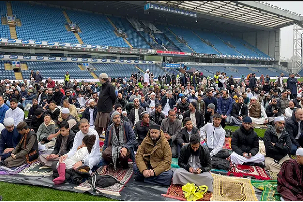 به گزارش ایکنا به نقل از گاردین، صدها نفر روز دوشنبه به مناسبت پایان ماه مبارک رمضان در پارک ایوود، استادیوم اختصاصی تیم بلکبرن گردهم آمدند. تصاویر هوایی منتشر شده توسط باشگاه تقریباً نیمی از زمین را پوشیده از جانماز و یک روحانی را در حال ایراد خطبه، نشان میدهد.
