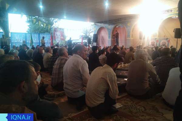 وی با اشاره به اینکه حضرت امیرالمؤمنین علی(ع) اولین رهبر و پیشوای شیعیان بهعنوان نابترین الگوی جهانی نماد اقامه بندگی و امور دینی در طول تاریخ بشریت است، بیان کرد: گسترش عدالت و وظیفهشناسی در جامعه بهعنوان یکی از آثار تربیتی نماز است. تجلی این آیات الهی در شخصیتهایی همچون امیرالمؤمنین امام علی(ع) بهعنوان خیبرشکن اسلامخواه و در سپهبد شهید حاج قاسم سلیمانی بهعنوان ذوالفقار و یاور انقلابی ولایتفقیه حتی در میدان استقامت و استکبارستیزی نمایان است و در جامعه بازتاب ماندگاری داشته است.